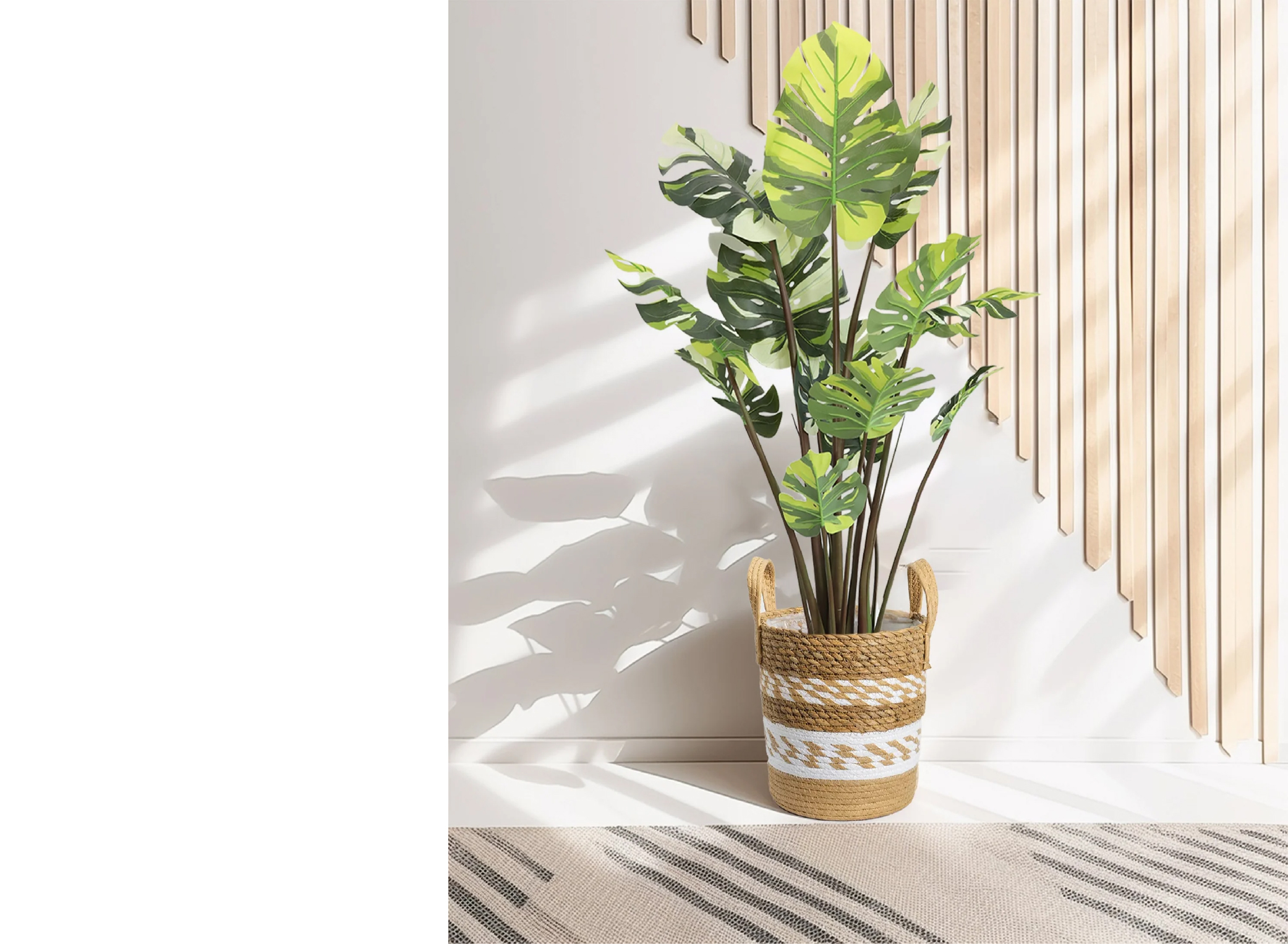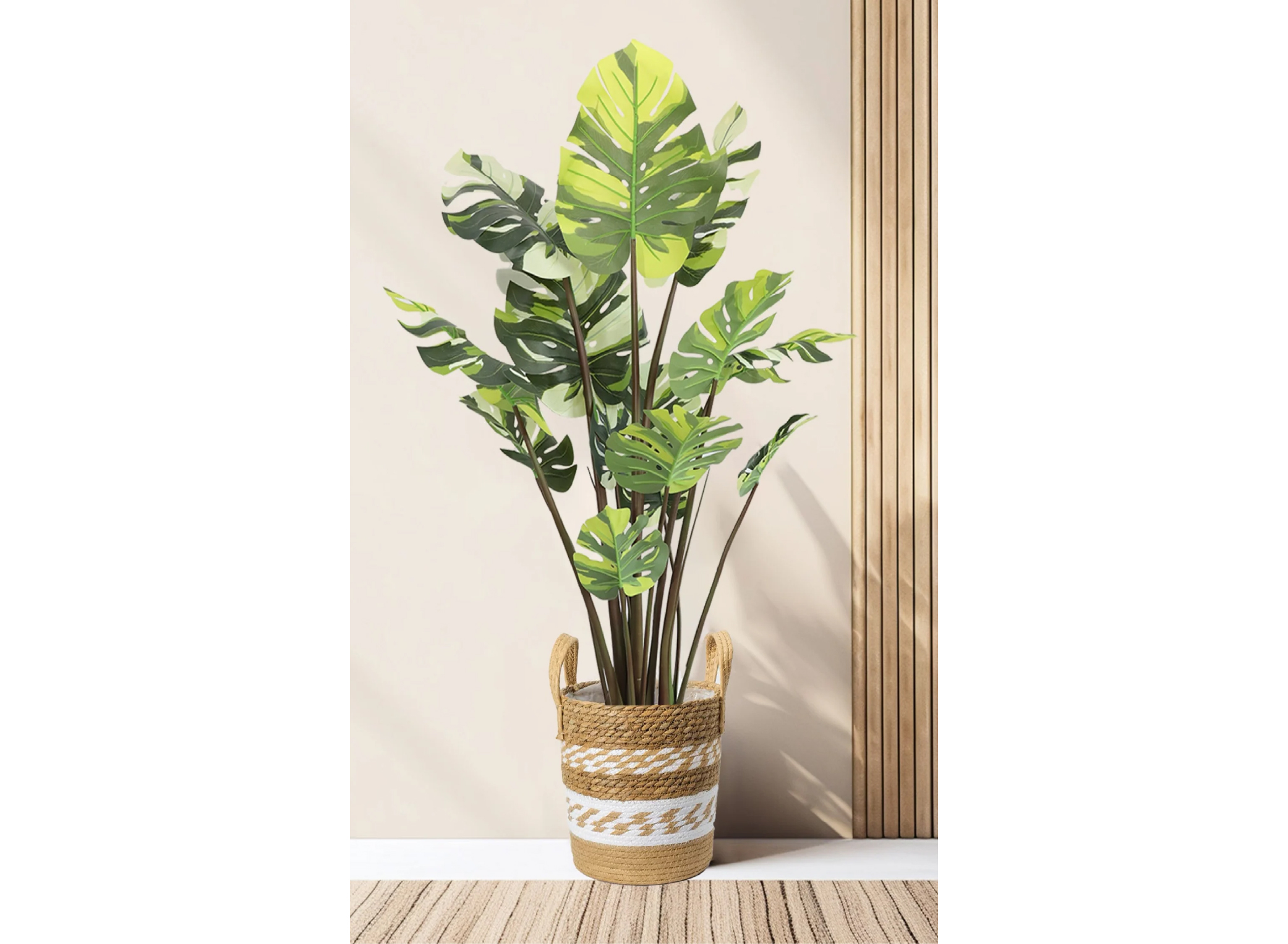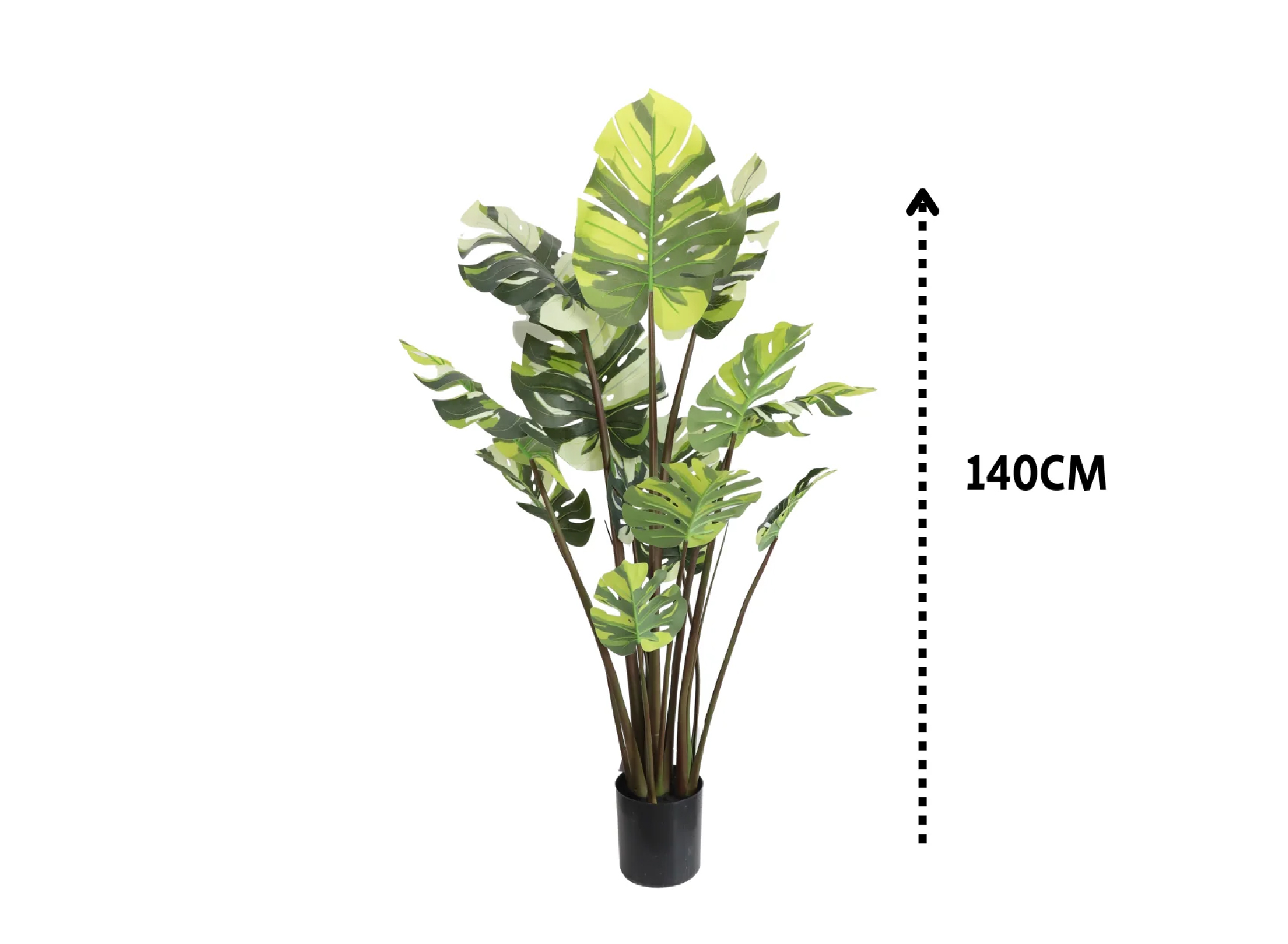מידות: גובה עץ מונסטרה מלאכותי 140 ס"מ, ניתן להגביה את העציץ עד 30 ס"מ נוספים באמצעות תוספת אדנית מעוצבת מהמגוון.