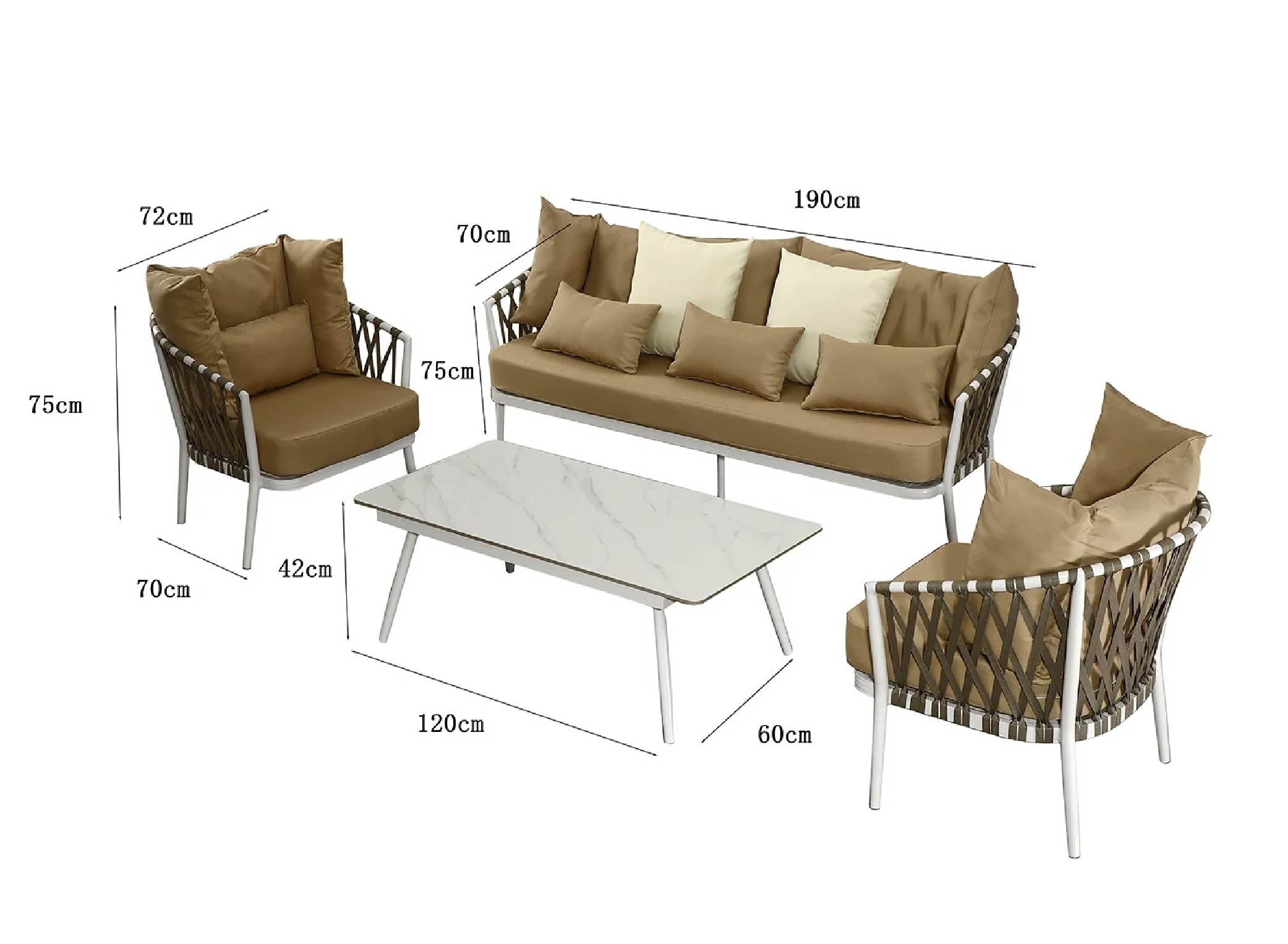 פינת ישיבה תלת מושבית דגם מונקו הינה מערכת ישיבה ייחודית בעיצוב אלגנטי ויוצא דופן המעניק תחושה יוקרתית, בעלת כריות גדולות ומפנקות לנוחות מירבית. המערכת עשויה משלדת אלומיניום קלה וקשיחה.